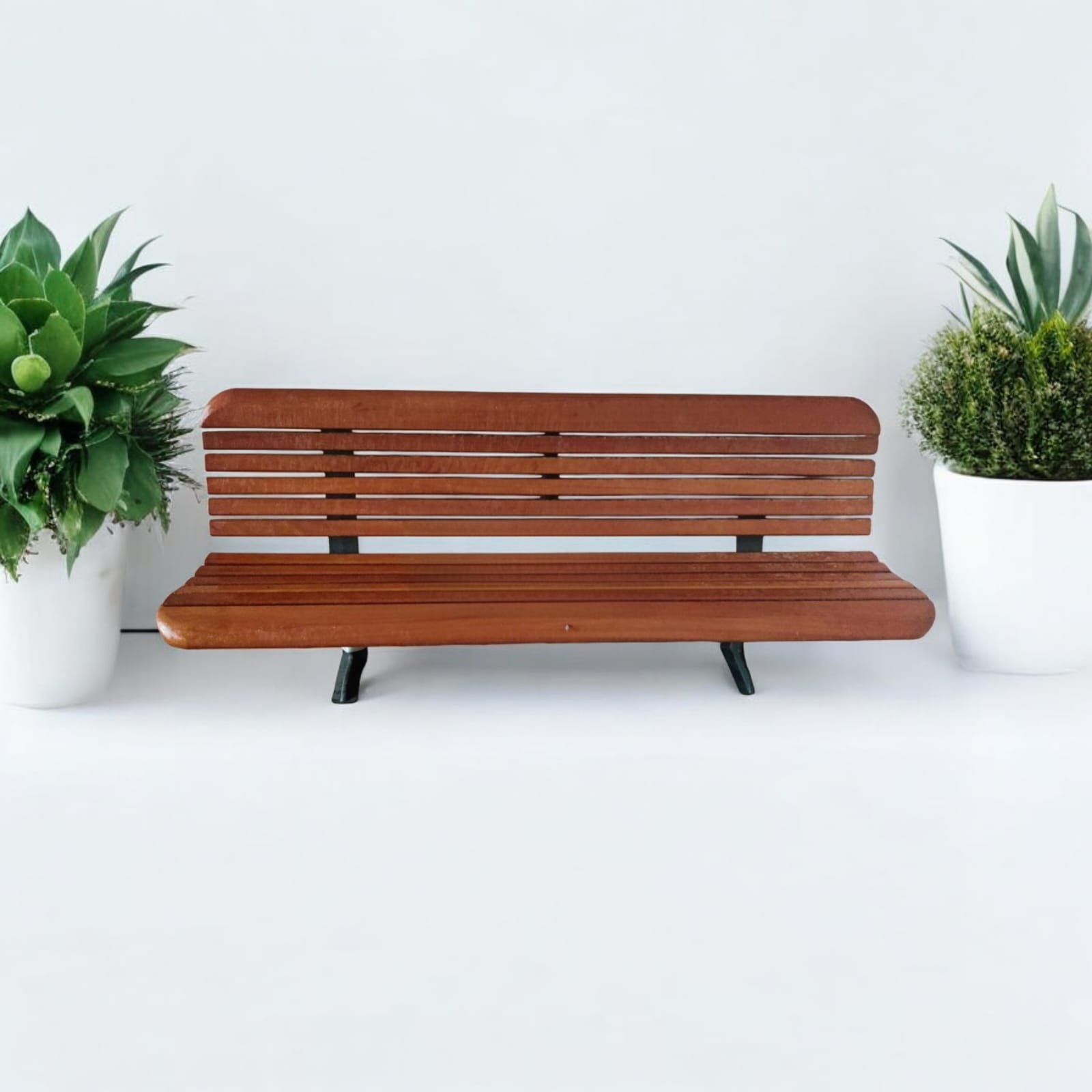 – 2 planches d’extrémité en bois exotique imputrescible de classe d’emploi 3, de section 50 x 110 mm arrondies sur toutes les arêtes, de longueur 2,00 m et comportant un usinage arrondi de confort aux 4 coins du banc.